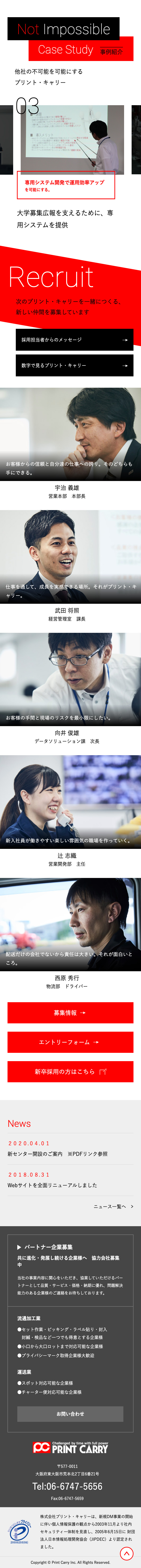株式会社プリントキャリーのコーポレートサイトリニューアルにあたってアートディレクション、デザインを担当しました。
