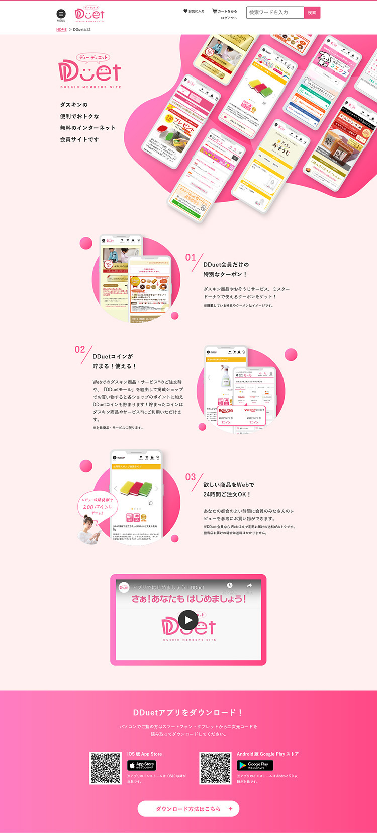 DUSKIN会員サイトDDuetの紹介ページのデザインを担当しました。