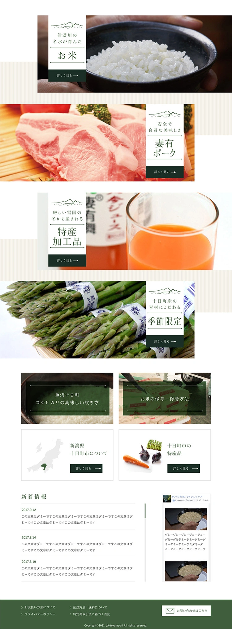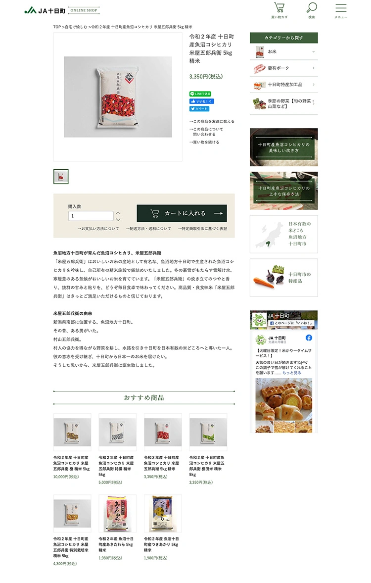 JA十日町のオンラインショップのデザインを担当しました。