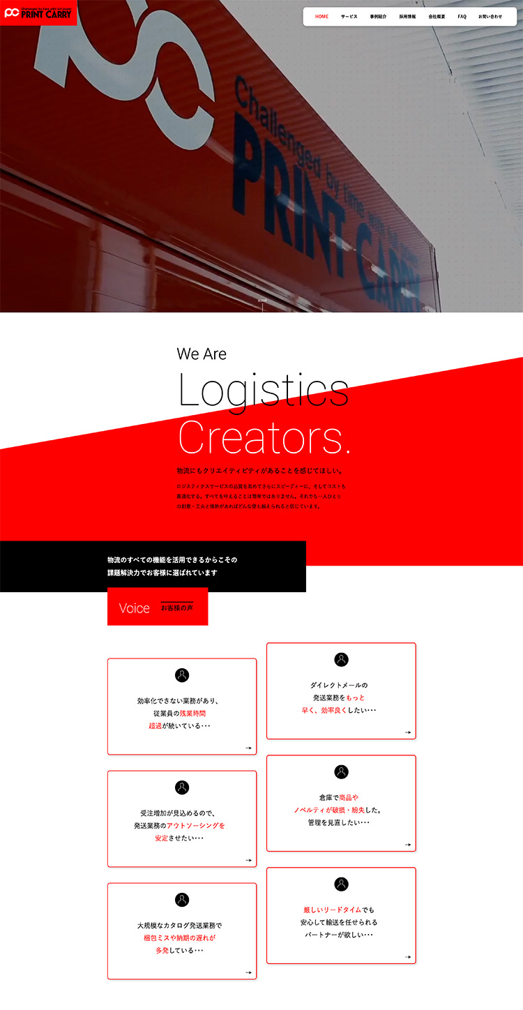 株式会社プリントキャリーのコーポレートサイトリニューアルにあたってアートディレクション、デザインを担当しました。