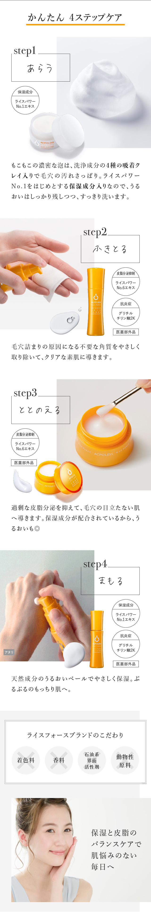 RICEFORCEの商品、ACPOLESSのLPのデザインを担当しました。