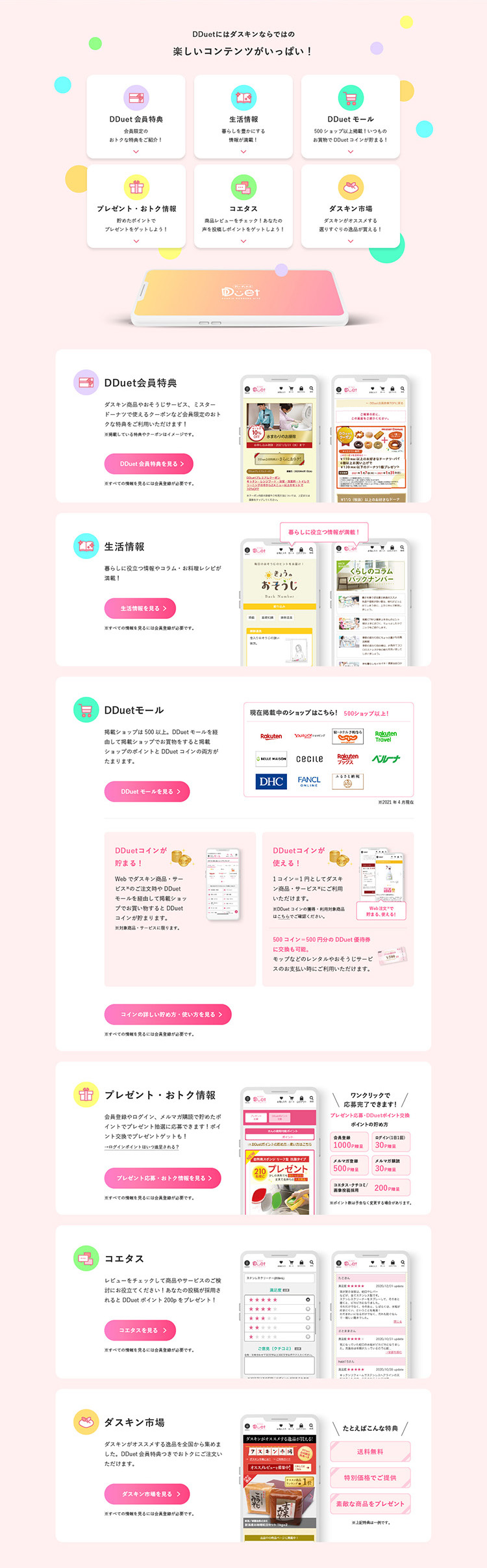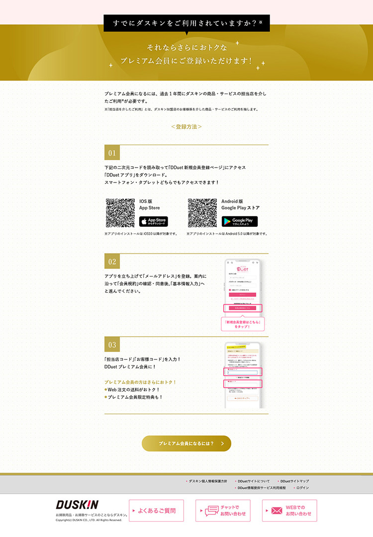 DUSKIN会員サイトDDuetの紹介ページのデザインを担当しました。