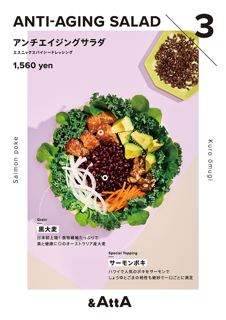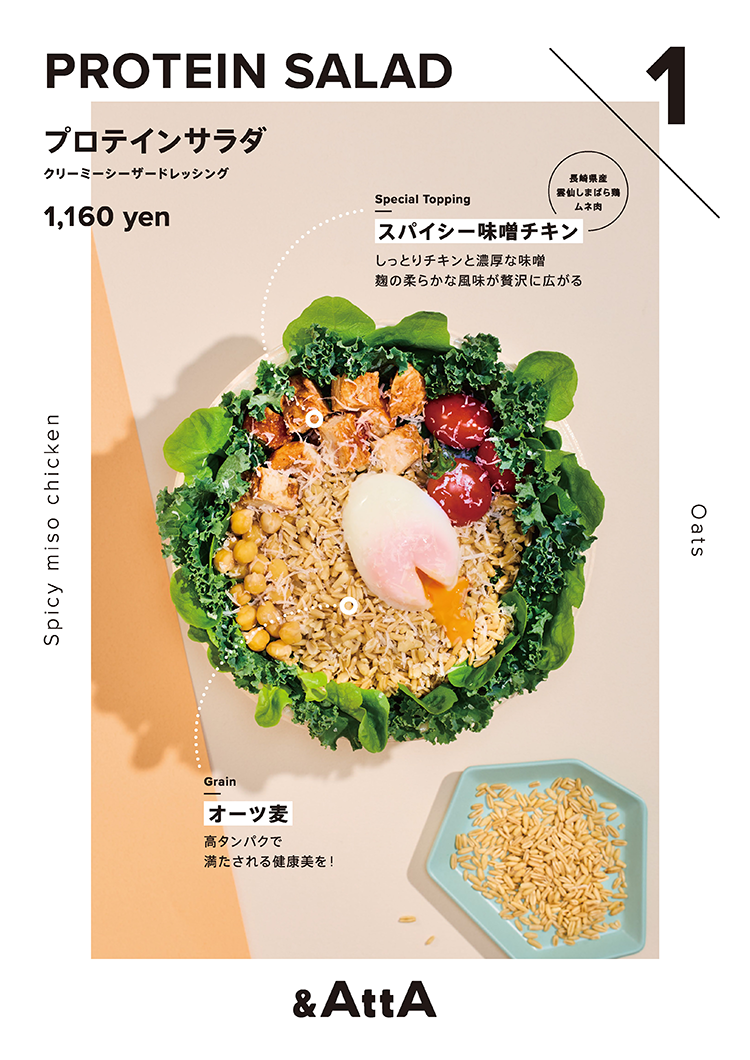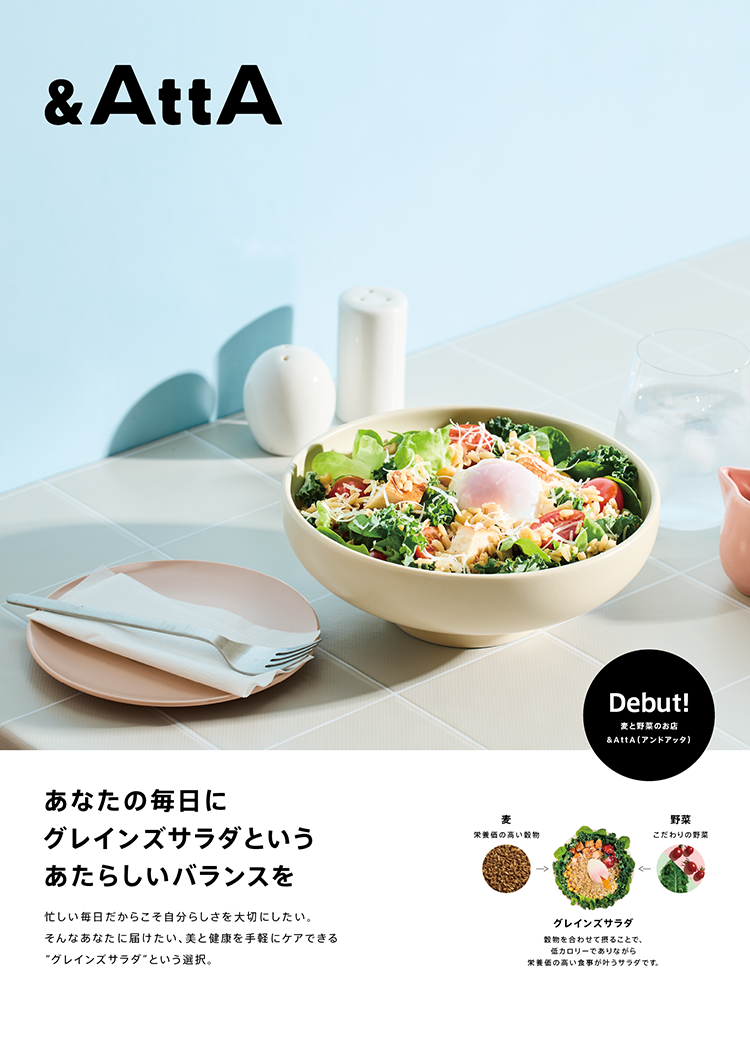 グレインズサラダ専門店&AttAのロゴ・紙ツールなどのアートディレクション、デザインを担当しました。